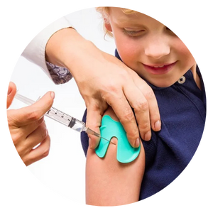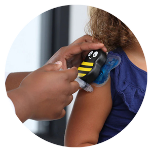 Buzzy usa vibração e gelo para reduzir a dor de agulhas, comprovado por estudos clínicos internacionais.